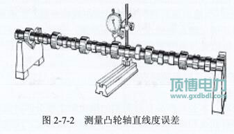 (2)檢查凸輪軸直線度:見(jiàn)圖2-7-2。直線度誤差極限控制在0.05mm之內(nèi)為好。